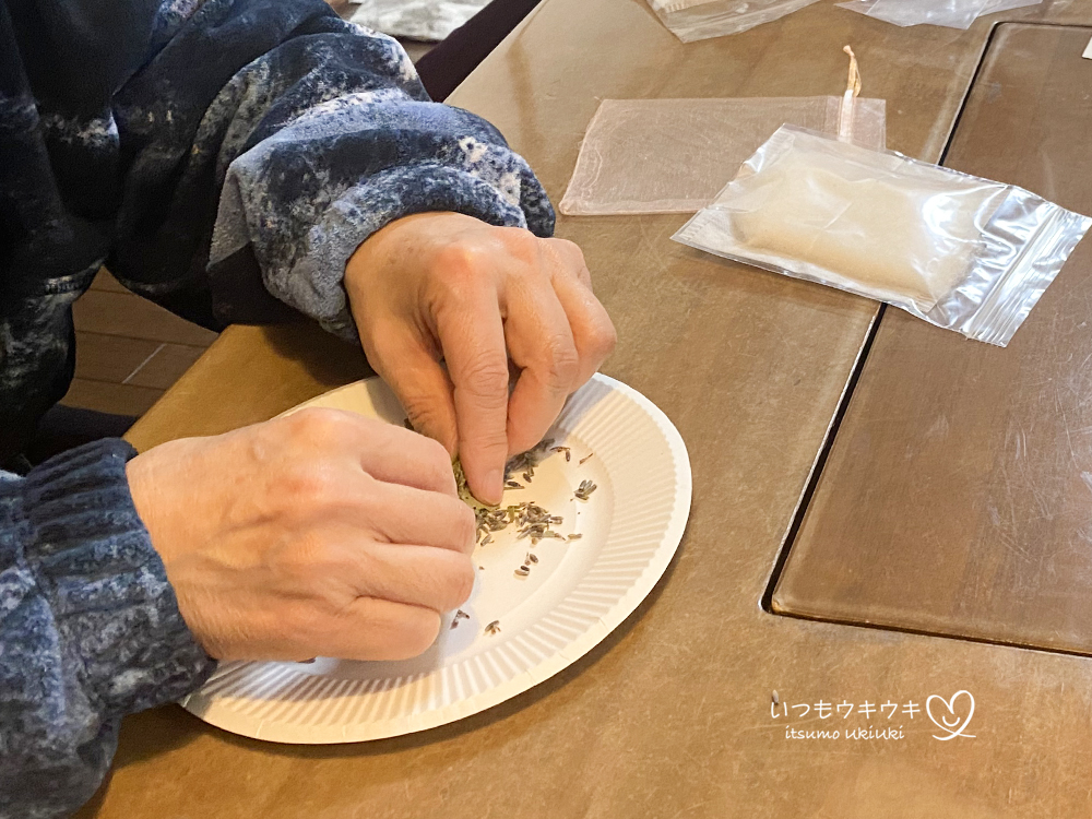 実はね、一昨日はご縁あって、別のお宅でサシェづくりのワークショップの説明&予行演習をしてきたんです。