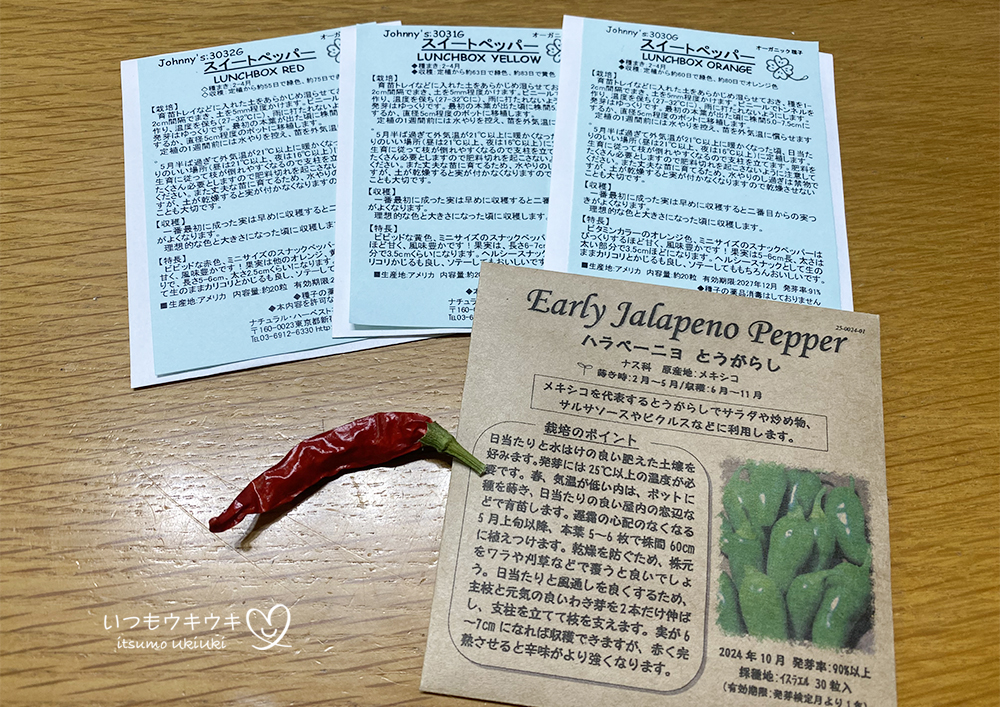 プリッキーヌ(かも)は特に、トムヤムクンのスパイスセットについてたものなので、どんな感じで育つ唐辛子なのか、個人的にかなり興味津々ではあるのですが、今年は見送ることにします。見る興味以上に、食べる頻度の多いものを優先したいと思います。