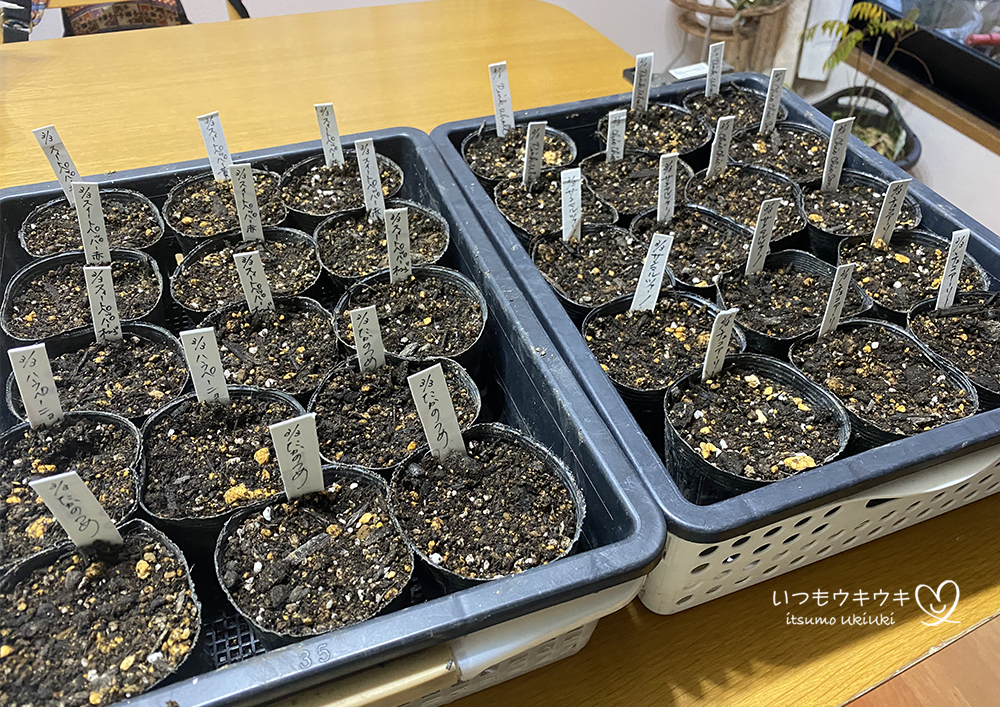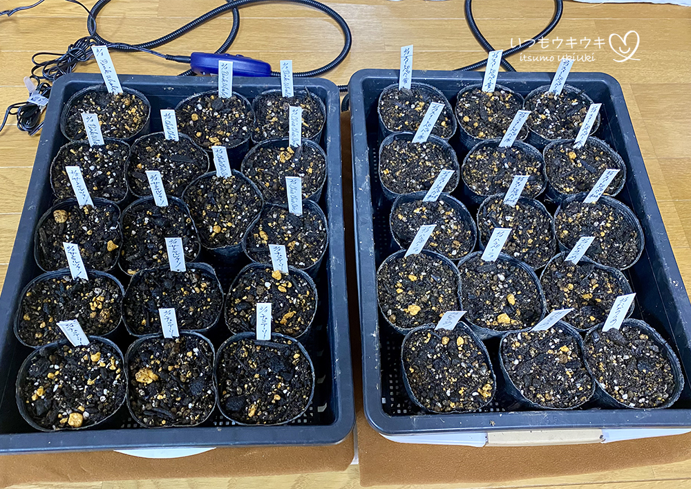 定植予定本数+1-2ポット多め、というスタンスで育てることにします。以前よりもぐっと減らしました!!