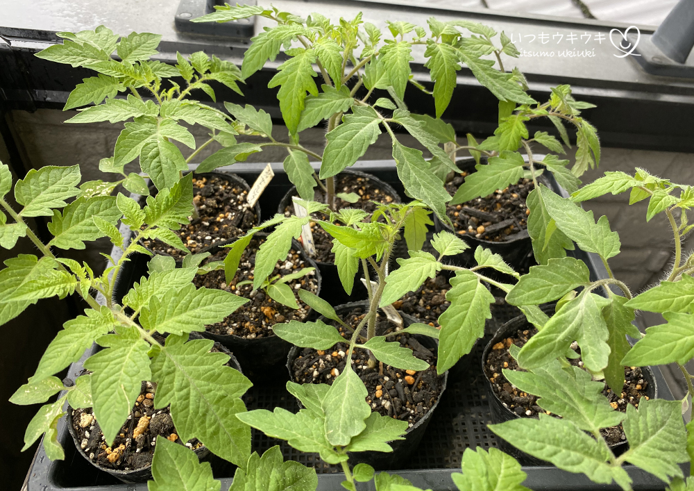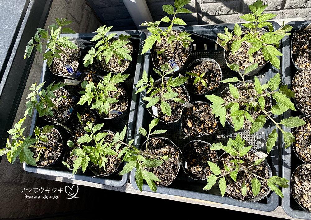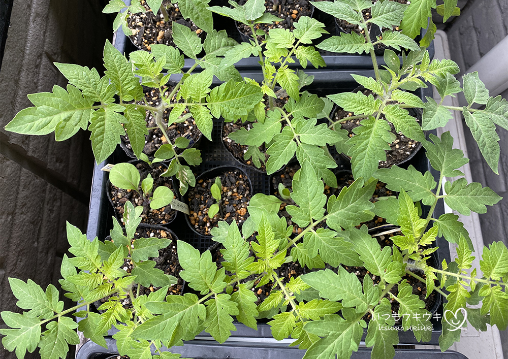 具体的に書くと、9センチポットにあげてから、トマトはひとつのトレーの中に12苗をいれていました。今は6苗しか入れていません。